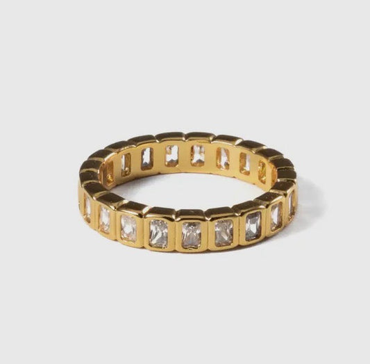 18k Gold Tennis Emerald Cut Ring