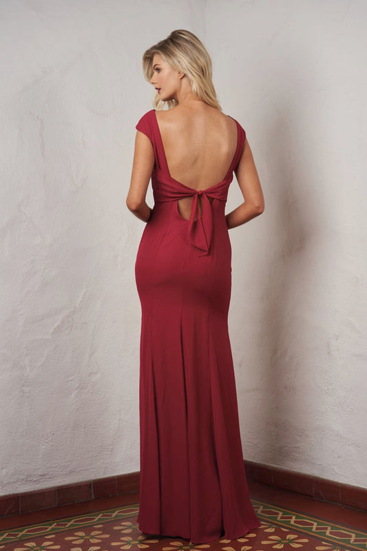 Custom Gown | Charlotte Chiffon Long Dress with High Boat Neckline