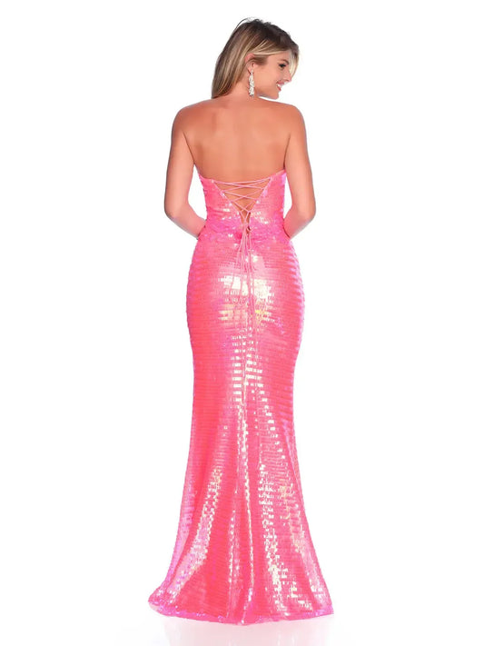 J195014 Long Boat Neckline Sequin Lace & Chiffon MOB Dress with Sleeves