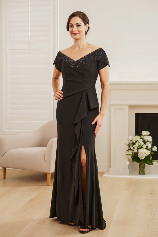 K228003 Stretch Soft Crepe Off-the-Shoulder MOB Gown