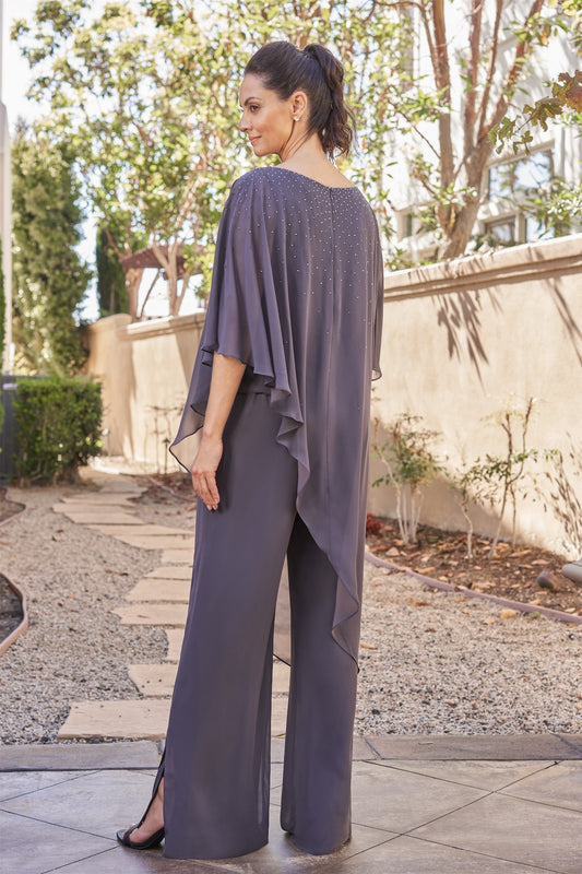 K258020 Classic Chiffon 2-Piece Asymmetrical Tunic and Pant Ensemble
