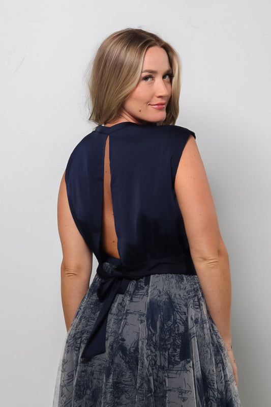 Back-Tie Crop Top - Navy Blue