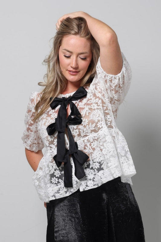 Lace Peplum Top with Satin Laces