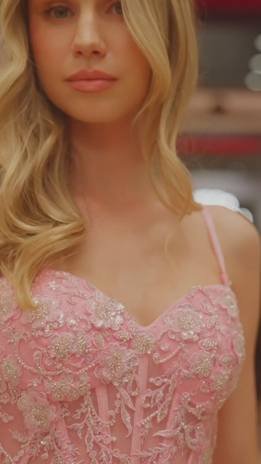 Strapless Sweetheart Applique Bust Prom Dress