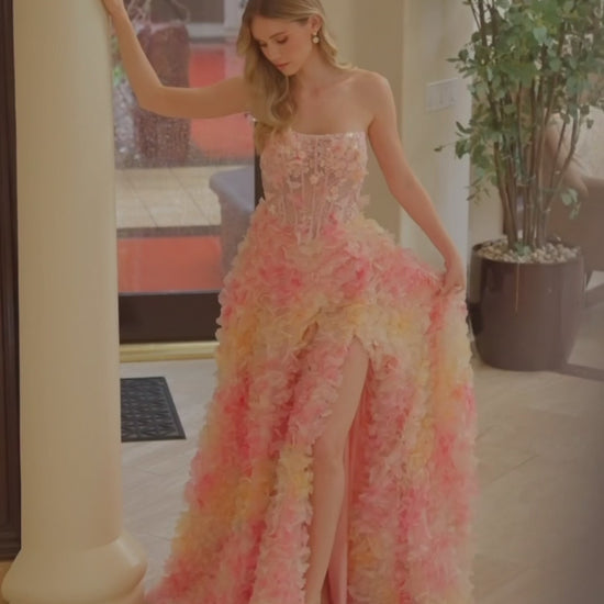 Step out in this show-stopping Floral Appliqué Ball Gown, a perfect Fit and Flare Long Tulle Gown designed for high-impact formal events. The bodice features dazzling colorful sequined embroidery over a daring plunging V-neckline and is secured by delicate spaghetti straps. A sophisticated sheer waistline transitions beautifully to the voluminous tulle skirt and a stunning crisscross back detail, completing this enchanting look with a magnificent sweeping train.