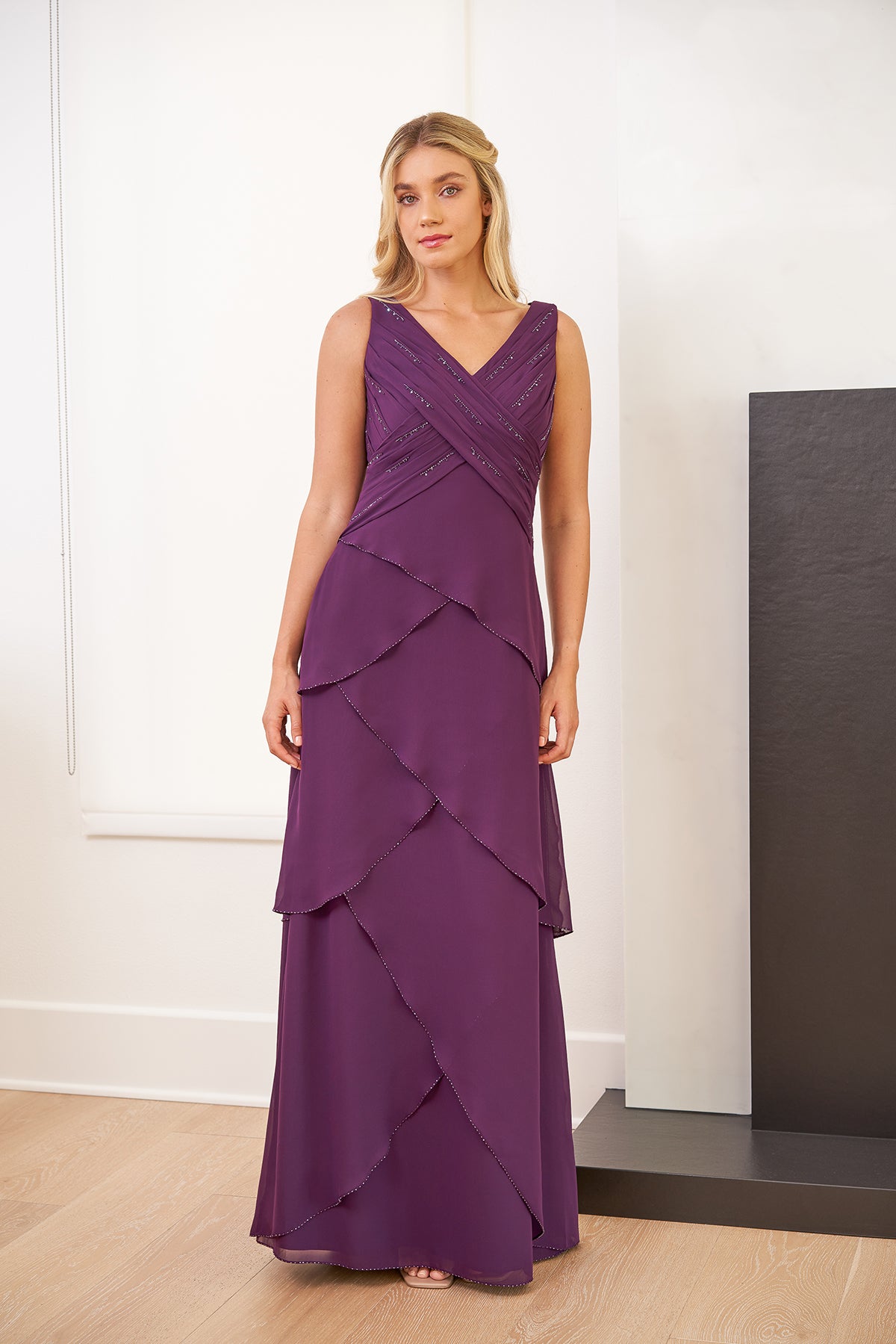 Elevate your special occasion with the J8807 Long V-neck Chiffon MOB Dress, designed to combine elegance and comfort. Featuring a flowing tiered skirt and a flattering V-neckline, this dress enhances your silhouette gracefully. The included shawl adds versatility and warmth, perfect for transitioning from ceremony to celebration. Crafted from lightweight chiffon, it ensures effortless movement and a refined look that stands out. Ideal for the mother of the bride or groom seeking timeless style and sophistication.