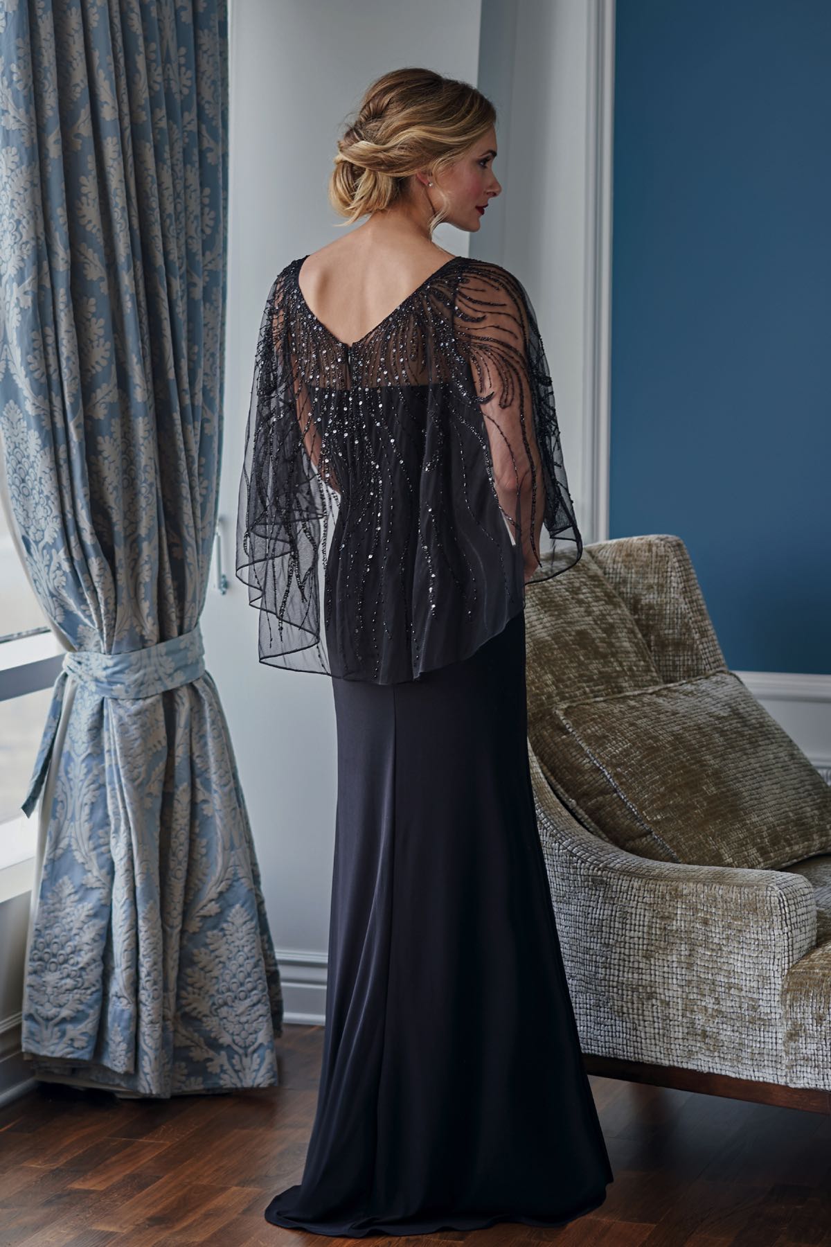 K218054 Matte Jersey MOB Dress with Beaded Cape & Boat Neckline