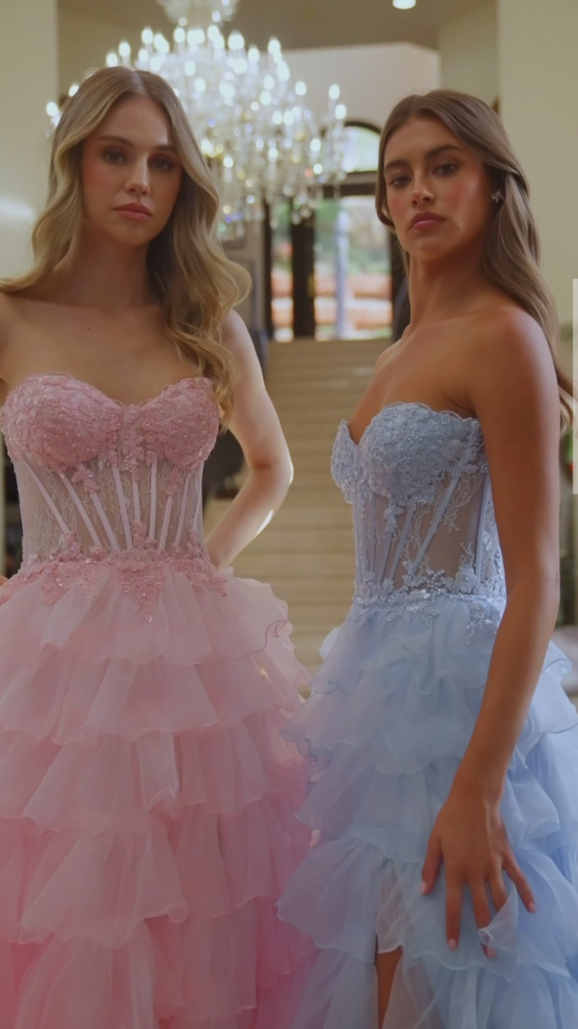 The gown features a long, layered skirt that flows gracefully to the floor, providing beautiful movement with every step. The classic sweetheart neckline tops a perfectly fitted bodice, while the waistline is artfully accentuated by a sheer, boned panel that cinches and flatters your figure.
